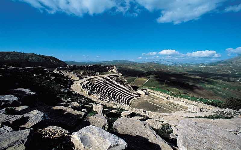 L’antico sito archeologico di fondazione Elima a pochi chilometri da Trapani, conserva ancora per intero, il magnifico colonnato in stile dorico di un tempio che rimase incompiuto probabilmente per via di incursioni straniere; più in alto sul monte Barbaro si apre il teatro le cui gradinate a semicerchio, guardano la costa tra Alcamo e Castellammare: una scenografia naturale d’impareggiabile bellezza. Scavi più recenti hanno rilevato i resti di un altro tempio di precedente costruzione nella parte più alta del sito.